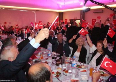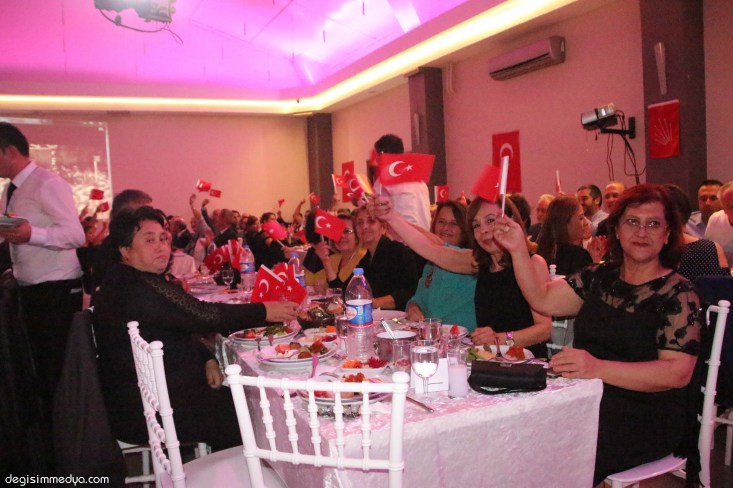 Saygı duruşu ve İstiklal Marşı’nın okunmasıyla başlayan gece, Gazi Mustafa Kemal Atatürk’ün yaptığı devrimleri anlatan ve CHP Genel başkanı Kemal Kılıçdaroğlu’nun adalet yürüyüşüne ait sinevizyon gösterimiyle devam etti.