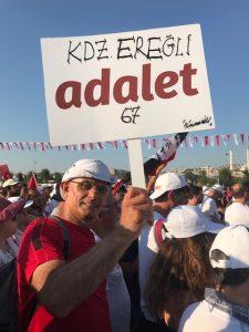 “İstanbul, Maltepe Sahilindeki Mitingimize de 09 Temmuz 2017 Pazar günü CHP Kdz. Ereğli İlçe Başkanlığımızca organize edilen 5 araçlık bir konvoy ile eşlik edip, Adalet arayışımızın içerisinde yüzlerce insanımızla birlikte yerimizi aldık.