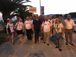 15 Haziran 2017’de sabah saatlerinde Ankara Güvenpark’ta Genel Başkan Kemal Kılıçdaroğlu ile başladığı “adalet” yürüyüşüne partililer,STK’lar ve vatandaşlarla birlikte Ankara’da, Bolu’da, Düzce’de, Hendek’de, Sakarya’da, İzmit’te, İstanbul’da günlerce eşlik ettiklerini belirterek “Her gün çığ gibi büyüyen yürüyüşümüz Türkiye Cumhuriyeti’nin en önemli destanlarından biridir. Bu destanı yazan Cumhuriyet aşığı, Adalet aşığı vatandaşlarımızdır” dedi.